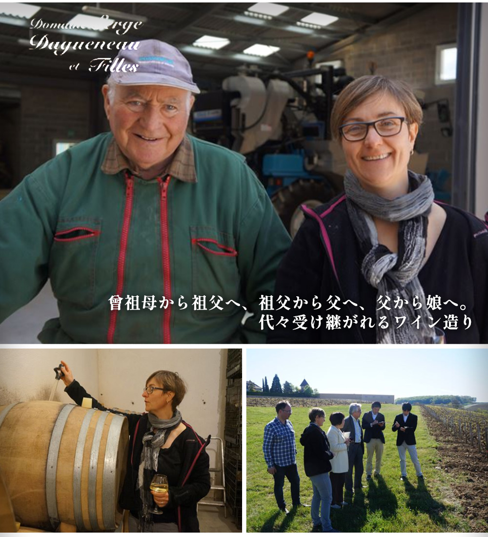 ![]() ダグノー家はペルティエの村に住み1830年からワイン造りをする家系で、セルジュ ダグノーは、二人の娘ヴァレリー('70年生まれ)とフロランス('69年生まれ)と共にワイン造りをしています。プイィの中で最も良いと言われるシレックス(いわゆる火打ち石の香り:ミネラルの風味をソーヴィニオン ブランにもたらす土壌)をもつサント・アンドラのエリアに畑を持っています。 ![]() 畑では1988年以来ビオディナミ農法で作業を行っています。除草剤は使わず定期的に耕すことで雑草を取り除き、化学肥料は使わず有機肥料のみ少量使用しています。農薬、化学肥料は使わず、除草剤も使いません。土を掘り返しています。ビオにしないのは、認証を受けると規定に縛られ、自由な選択が出来なくなるためです。 ![]() ロバートパーカー氏だけでなく「ラ ルヴェ デュ ヴァン ド フランス」でも四ツ星が付けられています。プイイ・ヒュメについてヒュー・ジョンソン氏は、「銃の硝煙」ような匂いをもつ、フルーティで鋭いことの多い白。ロワール河上流のサンセールの近くの葡萄栽培地で産する。葡萄は必ずソーヴィニヨンを使う」として★★→★★★★4つ星 ![]() 2016年から新しいプレス機を使用しています。また、新しいセラーは、大きくて広く、グラヴィティフローシステムを採用し、作業が楽になりました。 |