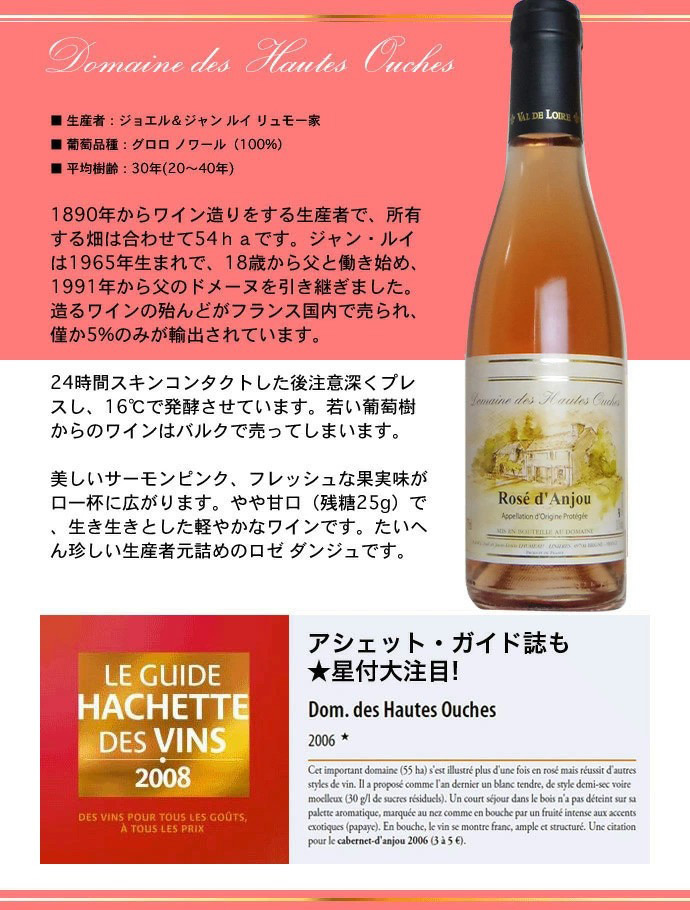 ロゼ・ダンジュ 2024 ハーフサイズ ドメーヌ・デ・オート・ウーシュ (ジョエル&ジャン・ルイ・リュモー家)