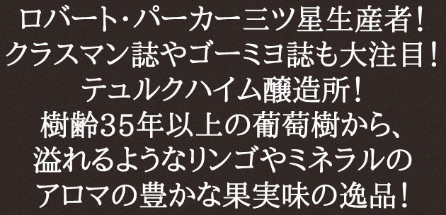 ![]() アルザス・リースリング 2022年 テュルクハイム醸造所辛口リースリングのお手本とも言うべき蜜リンゴとミネラルの適度な強さのアロマ。ミディアムボディで、優雅で、よく熟していて、純粋なこの辛口アルザスリースリングは、非常に豊かですばらしい果実味を備えています。 |
