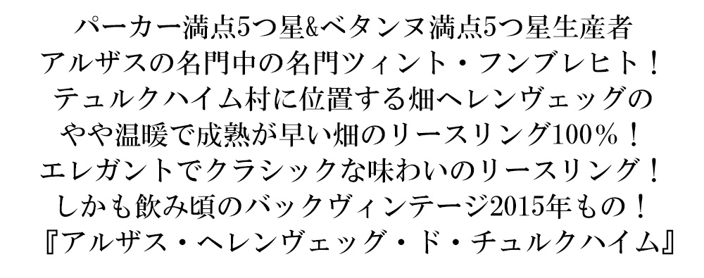 アルザス リースリング ヘレンヴェッグ ド チュルクハイム 2015 自然派ビオディナミ(エコセール認証)ビオディヴァン AOCアルザス リースリング