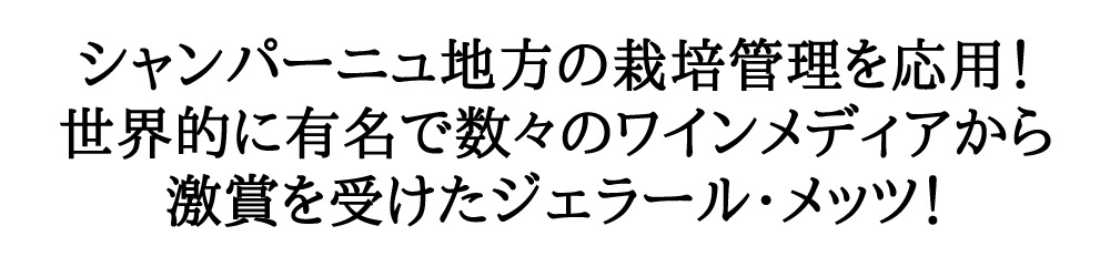 ![]() ワインはその嗜好性や芸術性、多様性等において、しばしば音楽に例えられますが、「ジェラール・メッツ」の当主エリック・カジミールは、両者の関連性を独自に高めた哲学に基づくワイン造りを行っています。シャンパーニュ・オーブ地方にRM「ミッシェル・コロン」を運営するコロン家出身の彼が、ランスで看護婦をしていた奥さんと結ばれ、奥さんの実家であるこのアルザスのドメーヌに来たのは1989年。ストラスブールとコルマールのちょうど中間辺り、イッテルスヴィレ村の地において義父となったのは、数多のワインメディアから激賞を浴びた名人ジェラール・メッツでした。偉大な義父より栽培と醸造の極意を叩き込まれながら、シャンパーニュ地方の栽培管理を応用した厳格な収量制限を取り入れるなど独自の改革も行い、1996年、晴れて正式にドメーヌを継承しました。 ![]() 幼少時よりフルートとギターを習い始めたエリックは、音楽に熱中した多感な青年時代を過ごしました。「ロック、ポップス、モッズ、パンク、ヘヴィメタ、ジャズ、クラシックまで、のめり込みました。母は一時期の私の髪型を見て卒倒しそうになりました(笑)」。 「ワイン造りに携わるようになってすぐに、これは音楽とまったく同じだと気づきました。ピアノ曲などの演奏で考えると分かりやすいですが、楽曲は、テロワール。アルザスのような土壌の複雑さや古樹は、和音の数が増えるといったような音楽性の高まり。演奏者は、醸造家。楽曲を尊重しながらも自らのイマジネーションをもって解釈し、修練を積んで演奏する。楽曲の素晴らしさと演奏者の心技が一体となった時、言葉では表現できない何かが、五感に響いてきます」。 ![]() 醸造所に本格的なオーディオシステムを装備しており、高音質の音楽を聴きながら仕事をすることにこだわっています。「醸造家の精神状態は、仕事の質に直結します。音楽は、私の心を常に穏やかに保ち、幸せな気持ちで仕事をさせてくれます。その心のありようは、きっとワインにも伝わっていると思います。「ピアノソナタ第11番イ長調(第3楽章が「トルコ行進曲」)」をはじめとして、モーツァルトが特に好きです」。 「思えば義父ジェラール・メッツの教えも、五感で感じなさい、というものでした。気候の変化を肌で感じる、畑や樹々の個性を全身で感じる、発酵の様態を体で感じる。大事なことはすべて、言葉では説明できません」。ラベルの楽譜は、このドメーヌ初のグランクリュ、「Riesling Grand Cru Muenchberg 1991」の完成を祝して、オペラの演奏で名高い「ストラスブール管弦楽団」に所属していた友人が作曲してくれたワルツからのもので、2009年ヴィンテージより、すべてのワインのラベルに採用されています。「心地よい和音のようなハーモニー(調和)とふくよかさが感じられ、飲むと自分の好きな音楽が自然に聞こえてくるようなワインを造りたいと思っています」。 |