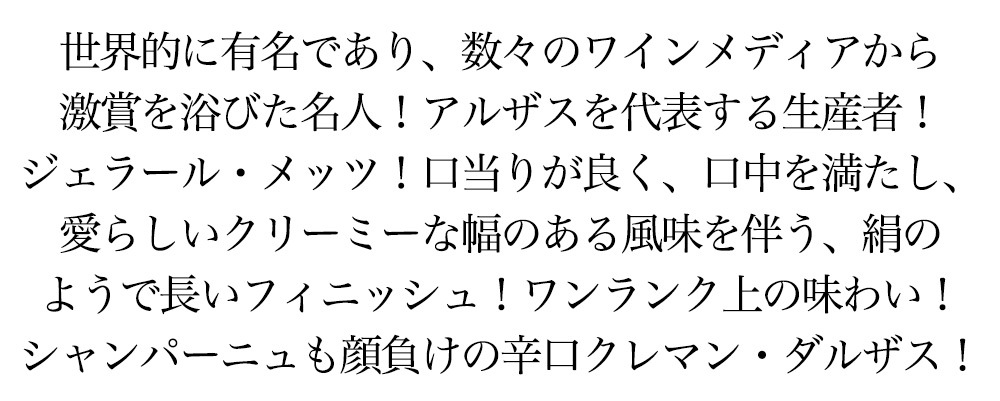 クレマン ダルザス ブリュット 蔵出し Dm ジェラール メッツ元詰 手摘み100% 自然派リュット レゾネ 白ワイン ヴァン ナチュール