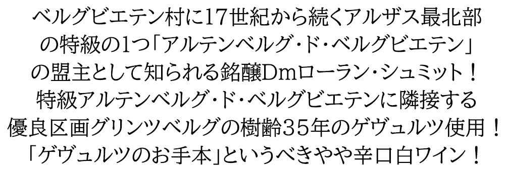 アルザス ゲヴュルツトラミネール グリンツベルグ 2023 ドメーヌ ローラン シュミット元詰 AOCアルザス 自然派 ヴァン ナチュール 正規品