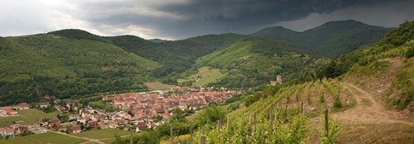 所有面積は28.5ha。所有する代表的な畑は、グラン クリュ シュロスベルグ。1975年にアルザスで初めて認定されたグラン クリュ畑で、総面積は80ha、その内ドメーヌ ヴァインバックは8haと最大面積を所有しています。もう一つは、ドメーヌの周辺にあり、単独所有するクロ デ キャプサン。980年頃の文献に登場する歴史的な区画で、シュロスベルグの丘の麓に広がり、修道僧によって作られた石垣によって囲まれています。