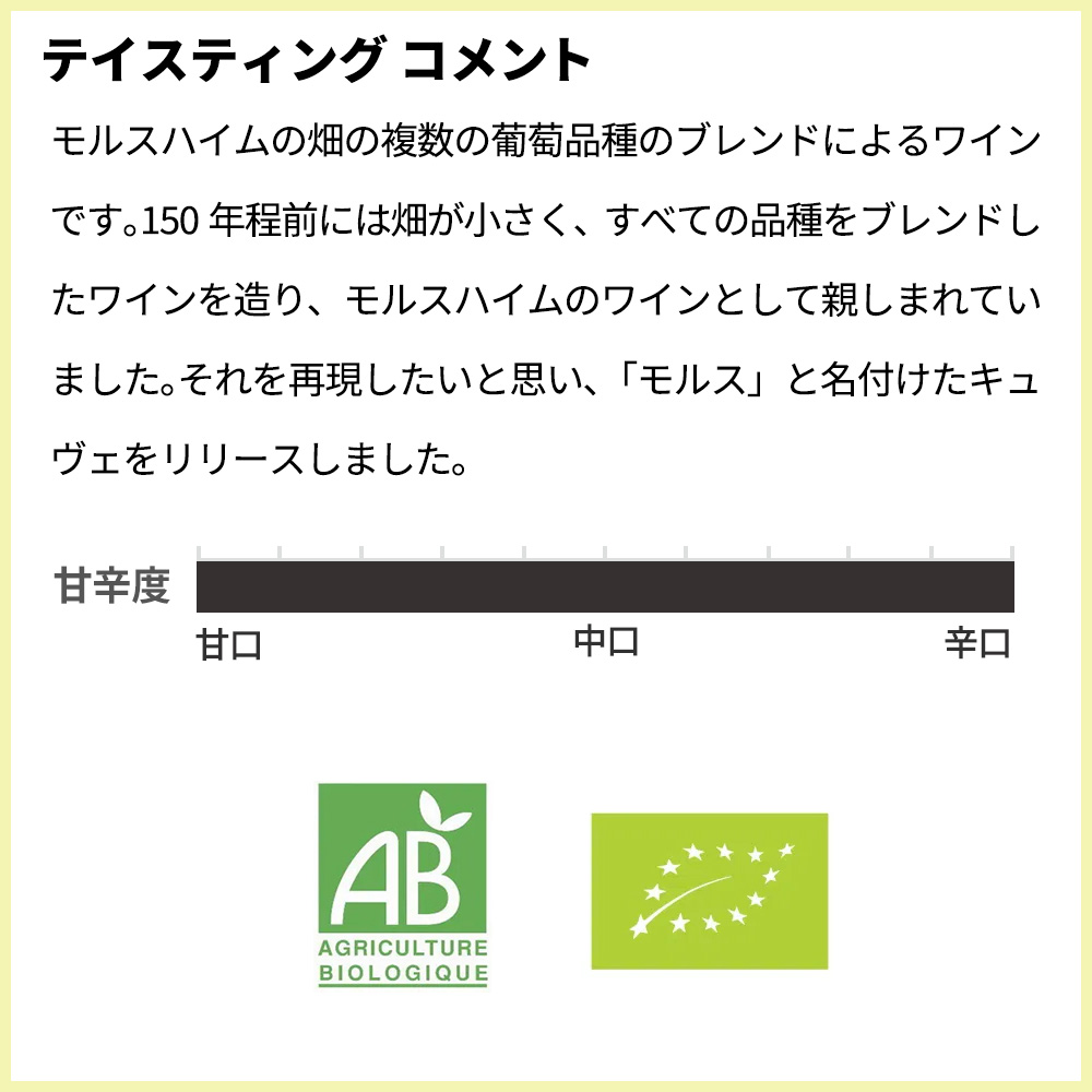 【商品名】アルザス・モルス・ブラン[2022]年・蔵出し作品・ドメーヌ・ブレル元詰(七代目・ジュリアン・ブレル家)・AOCアルザス・ブラン・年産わずか・モルスハイム村のピノブラン種主体に複数のブドウ品種・自然派・有機認証(AB認証&ユーロリーフ認証)・「メイユール・ヴァン・ド・フランス 2025年版星付★」で驚異の91点