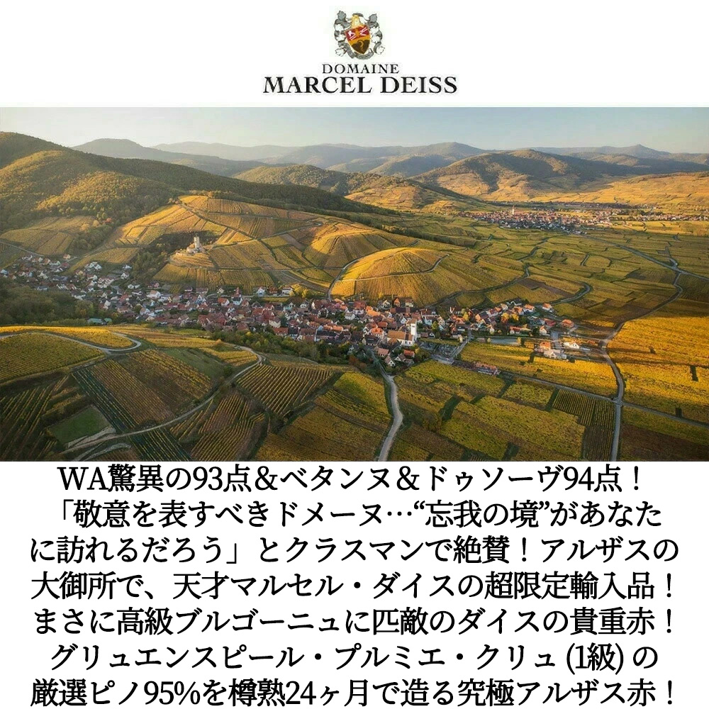【商品名】アルザス・プルミエ・クリュ・一級・“グリュエンスピール”・ルージュ赤[2022]年・蔵出し限定品・ドメーヌ・マルセル・ダイス元詰・AOCアルザス・プルミエ・クリュ・一級・自然派・ビオディナミ・エコセール・AB公式認定・オーク樽驚異の24ヶ月熟成・ワインアドヴォケイト驚異の93点&ベタンヌ&ドゥソーヴ94点