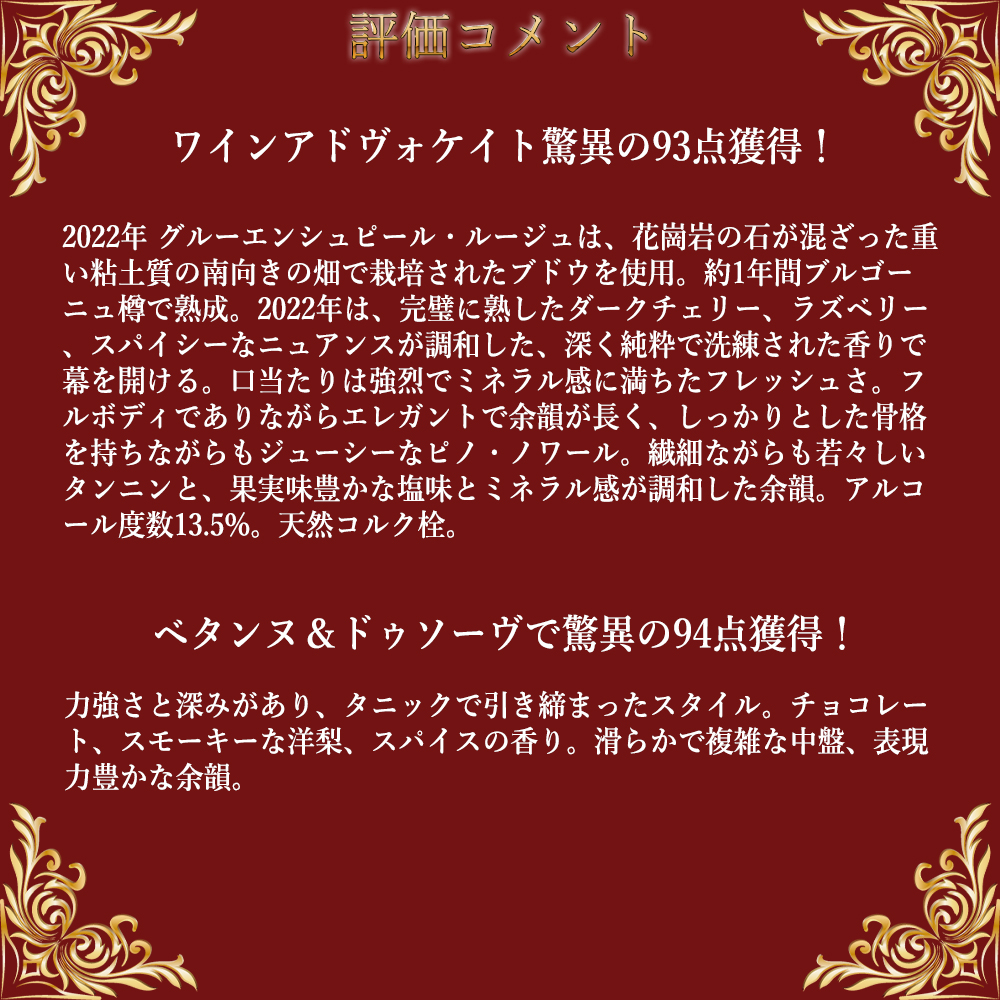 アルザス プルミエ クリュ 一級 グリュエンスピール ルージュ赤 2022 蔵出し限定品 ドメーヌ マルセル ダイス元詰 自然派 WA驚異の93点 Alsace 1er Gruenspiel Cru Rouge 2022 Domaineのレビュー