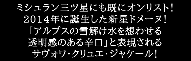 ![]() サヴォワ地方中央部、「ヴァン・ド・サヴォワ」の17のクリュのひとつでもあるクリュエ村に、2014年に誕生した新星ドメーヌです。継承する畑を持たなかったジュリアン・ヴィアナは、通常の栽培・醸造学の他に特別な栽培の学位(Licence de Pro Viticulture)を修めた後、アルバンの「シャトー・ド・メランド」での修行を経て、出身地クリュエのリウ・ディ「ラ・バラトリ」に0.8haの畑を購入して自身のドメーヌを設立しました。その後フェルマージュなどによって栽培面積を拡大しながら、すべての畑をビオロジー栽培に転換。最短の2017年にセティパック・ビオの認証を取得しました。 ![]() 「畑仕事は嘘をつかない。僕の座右の銘です。化学肥料や農薬は一切使用せず、この地サヴォワの大自然の結晶としてのワインを造りたいと思っています」。「僕が考えるサヴォワのテロワールの本質はミネラルにあり、このミネラルを損なわないよう、自然な醸造を心掛けています。スモーキーな香気や塩味こそ、お料理のベストパートナーです」。実際彼のワインは、仏ミシュラン3つ星の「フロコン・ド・セル」や「ラ・ブイット」をはじめとして、フランスきっての美食の地として知られるサヴォワの数十軒のレストランにオンリストされています。 ![]() 美しい果実感をふわりと感じさせながら、液体はすっと喉を通って消えていく。たっぷりとしたミネラルの塩味はいつまでも口に残り、お料理の美味しさを際立たせる。かの地のレストランの窓から見えるアルプスの山々、森や湖の景色が、眼の前に広がるようです。 |