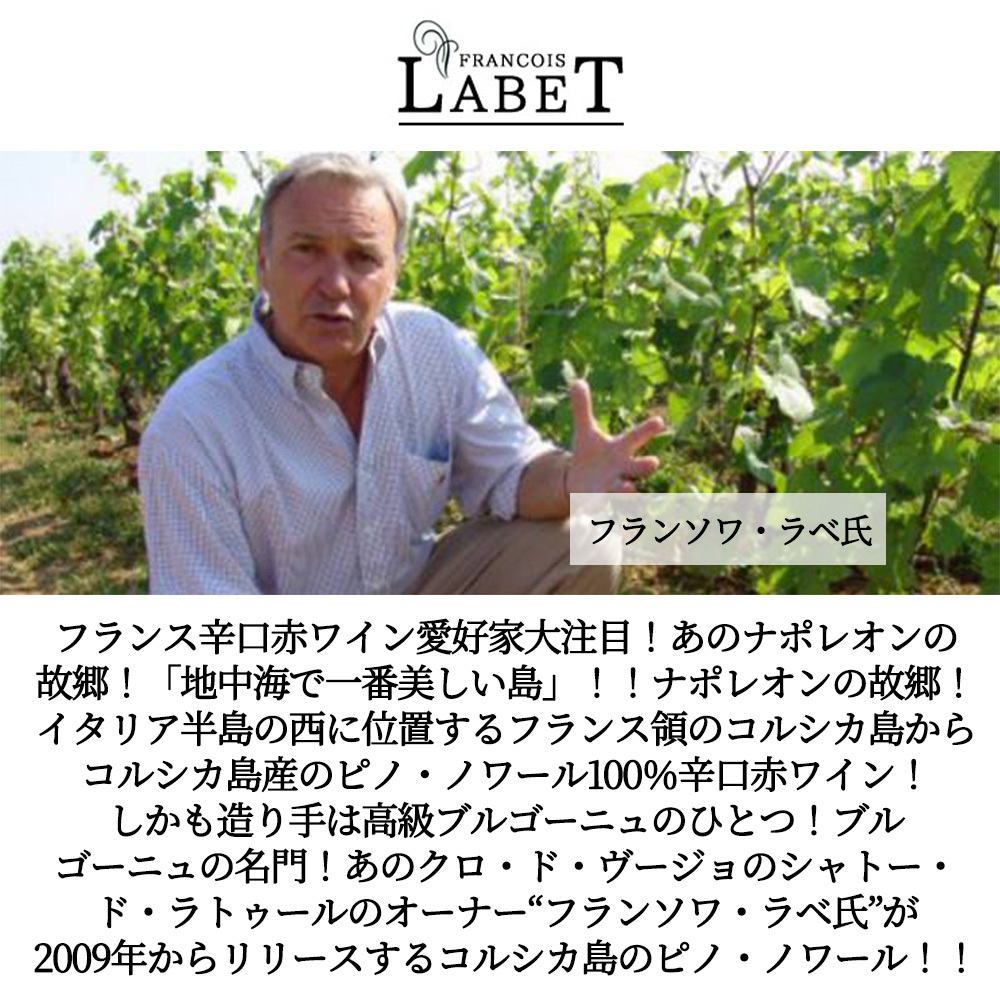 【商品名】フランソワ・ラベ・ピノ・ノワール[2023]年・フランソワ・ラベ・(ブルゴーニュのクロ・ド・ヴージョの最大所有者・シャトー・ド・ラトゥールのオーナー)・自然派・リュットレゾネ・フランス・コルシカ島(コルシカ島東側のプルネリ・ディ・フィウモルボの村の畑のピノノワールを100%使用)・ピノノワール種100%・(IGPイル・ド・ボーテ)・12.5%