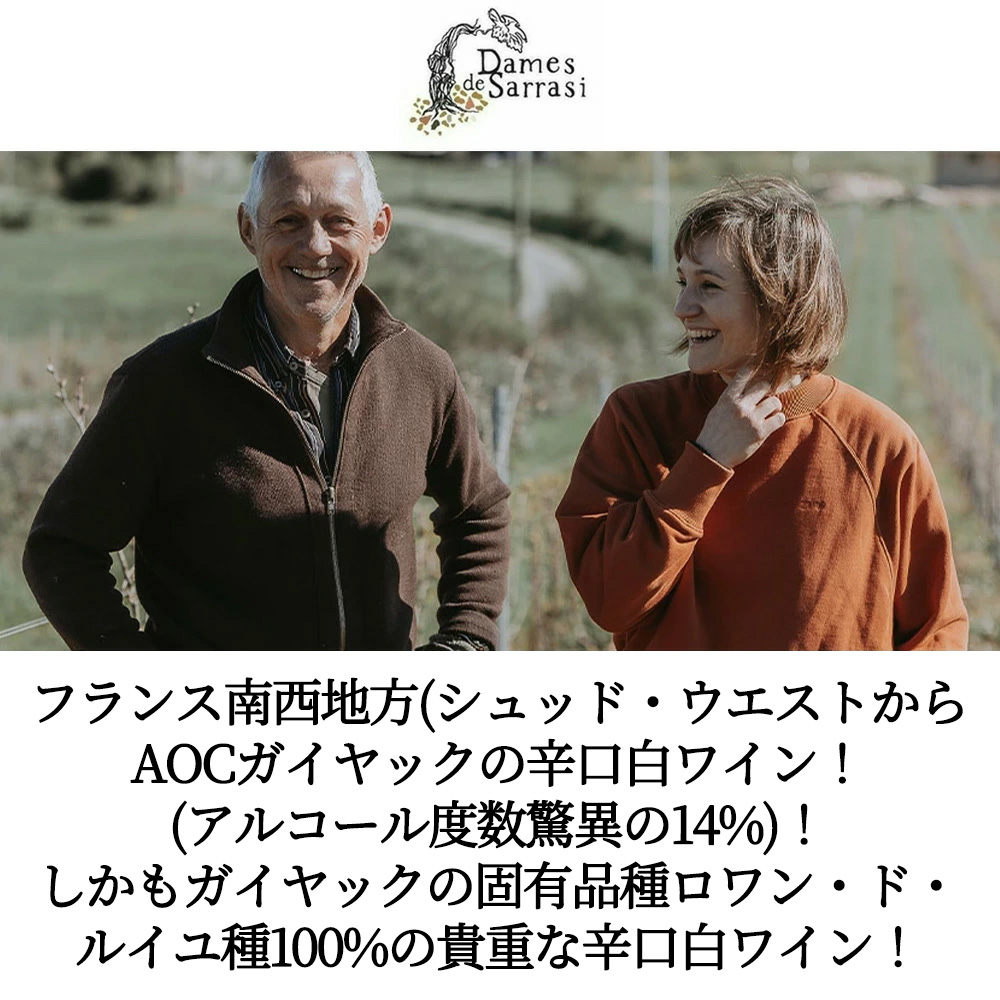メリジャンヌ ガイヤック ブラン 2023 ドメーヌ ダーム ド サッラシ元詰 (ブルーノ&マリー モントル家) AOC 自然派 度数驚異の14% Melijeanne Gaillac Blanc 2023 Dames de Sarrasi