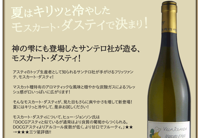 サンテロ モスカート・ダスティ ヴィッラ・ヨランダ 2023 DOCG モスカート・ダスティ (イタリア・スパークリングワイン)