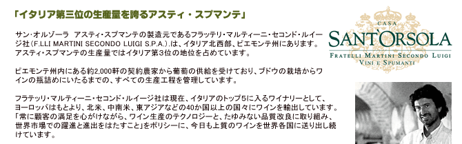 サン・オルゾーラ アスティ・スプマンテ (イタリア・スパークリングワイン・甘口)