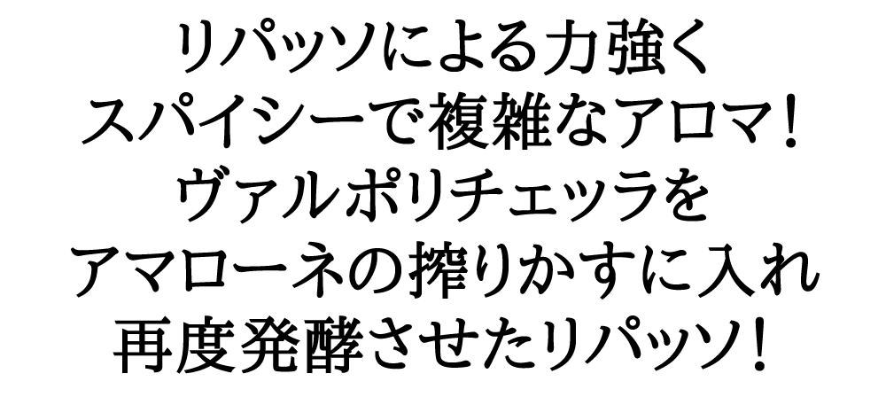 ![]() ァルポリチェッラ・クラッシコ・スペリオーレ リパッソ ヴィッラ・リゲッティ 2021年 ルイジ・リゲッティ マラーノ、フマーネ、ネグラール、サンタンブロージョ、サン ピエトロ イン カリアーノの各村で産する葡萄を使用しています。9月に収穫した葡萄は、除梗しやわらかく破砕します。発酵は、ステンレスタンクで温度コントロールしながら8日から10日間行います。翌年の2月、出来上がったヴァルポリチェッラをアマローネの搾りかすに入れ、再度発酵させます。この手法を「リパッソ」と呼びます。熟成は全体の50%をフレンチオークの大樽、残りの50%をフレンチオークのバリックに入れ、12ヶ月行います。深みのある赤色。リパッソによる力強く、スパイシーで複雑なアロマがあります。しっかりとボリュームがあり、ほどよい酸と洗練されたタンニンが感じられます。非常に調和のとれた味わいです。 |