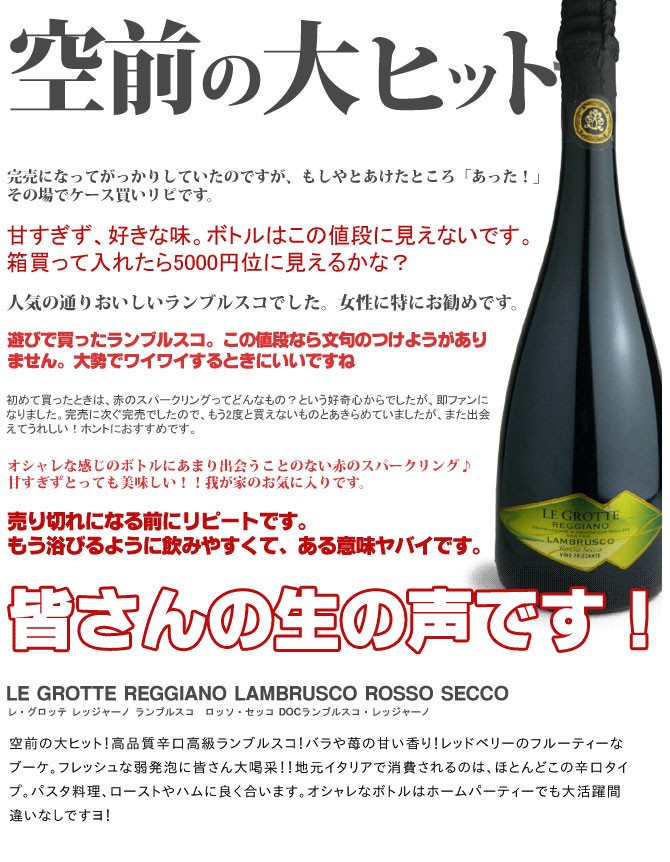 レ・グロッテ レッジャーノ ランブルスコ ロッソ・セッコ