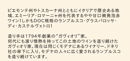 ガヴィオリ ランブルスコ・グラスパロッサ・ディ・カステルヴェトロ・アマービレ 750ml (イタリア エミーリア・ロマーニャ 赤 スパークリングワイン)