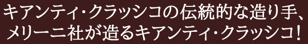 現在170ヘクタールの自社畑をもち、年間700万本の生産力をもつメリーニ社。GIV(グルッポ・イタリアーノ・ヴィーニ)に属し、安定した資本力をもって今も常に技術革新に取り組んでいます。「高品質ワインを少量造るのはさして難しいことではない。高品質なものを安定供給させることのほうがよほど困難である。」それを実現させているのが、キアンティのリーディング・ワイナリー、メリーニなのです。(醸造責任者:マルコ・ガレアッツォ)