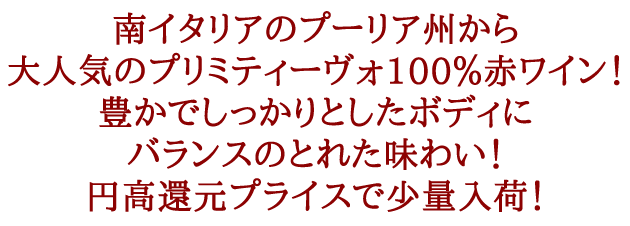 プリミティーヴォ・プーリア・ロッソ[2023]年・フェウド・モナチ(イタリア プーリア 赤ワイン)