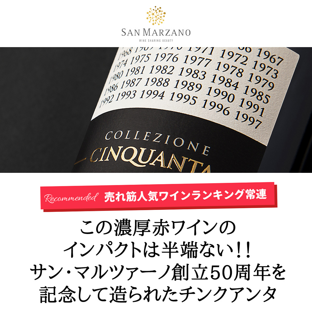 コレッツィオーネ チンクアンタ+7 N.V カンティーネ サン マルツァーノ 重厚ボトル ルカ マローニ驚異95点4冠金賞受賞<br>Collezione 50 San Marzano Vini S.P.A Salento IGT