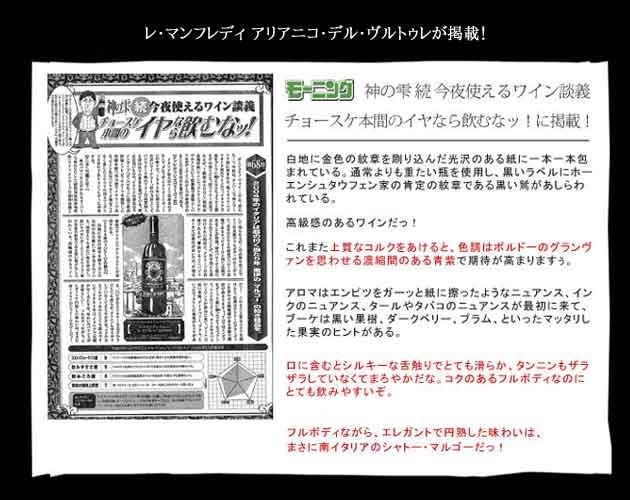 レ・マンフレディ アリアニコ・デル・ヴルトゥレ タグリオ・デル・トラルチオ 2015年 テッレ・ディ・スヴェーヴィ 正規 750ml (イタリア 赤ワイン)