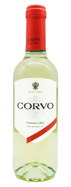 コルヴォ ビアンコ 2021年 ハーフサイズシチリア島の伝統的なブドウだけを使っています。南イタリアの太陽の恵を受けた心地良い酸味とフルーティな味わいは、広く愛されています。アンティパスト(前菜)にはもちろん、パスタ、甲殻類、貝類等と相性が良いワインです。