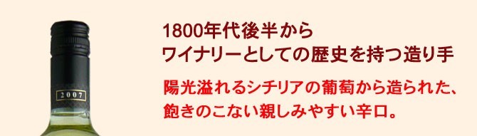【ワインについて】イタリア辛口白ワインファン大注目!1800年代後半からワイナリーとして歴史を持つ造り手!プーリア州のナルドにセラーを持つ“ロッカ”が“青い海と真っ赤な太陽”歴史と文化の宝庫の島シチリア島で、カタラット種、グレカニコ種とインツォリア種で造る、輝かしい色合い、フレッシュな香りが際立つ、陽光溢れるシチリアの葡萄から造られた飽きのこない爽やかで滑らかな味わいの、親しみやすい人気辛口白ワイン。高級感溢れるラベルです。