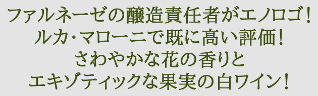 ![]() ザブのオーナーであるアデュア ヴィッラは南アメリカで生まれました。1980年にイタリアへ移り、ワインの販売に携わっていました。そのころから、いつかは自分のワイナリーを持つ事を夢見ていたのです。 そして、5年前に畑を購入し、畑の手入れを始めたのです。彼は、ファルネーゼの醸造責任者であるフィリッポ バッカラーロと10年来の友人だったので、自分の畑を見せました。するとバッカラーロは、その可能性を秘めた畑に惹かれ、ザブの醸造も手がけることになりました。 ![]() 畑を購入してから3年間は畑の手入れに専念し、4年目に初めてワインを造りました。 現在、自社畑は30haです。地元の農協とも協力しており、スタンダードラインは農協からの葡萄も用います。ザブの葡萄栽培専門家(アグノロミスト)が、農協の加盟者の畑を選びます。そして、徹底した技術指導を行い、品質は厳密にコントロールします。また、さらに葡萄を買う際には、バッカラーロが品質を認めた葡萄しか買い取りません。 ![]() スタンダードライン以外は全て自社畑の葡萄です。収穫時に選別を行い、収穫量は40hl/haに抑えます。シチーリアは気温が高いので、収穫は気温の低い時に行います。特に白ワインは重要で、夜中の3時から朝8時の間に摘み取ります。ワイン造りを始めて間もないザブですが、「ルカマローニ」ですでに高い評価を獲得しています。 |