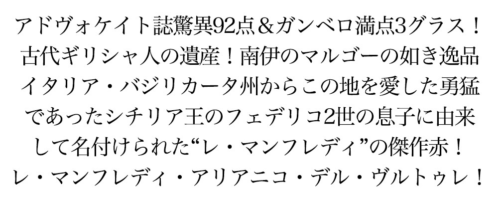 レ マンフレディ アリアニコ デル ヴルトゥレ 2019年 テッレ デッリ ズヴェーヴィ社 正規品 イタリア 赤ワイン