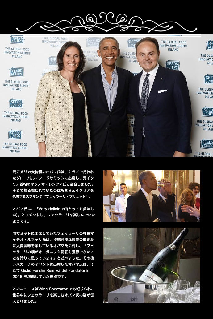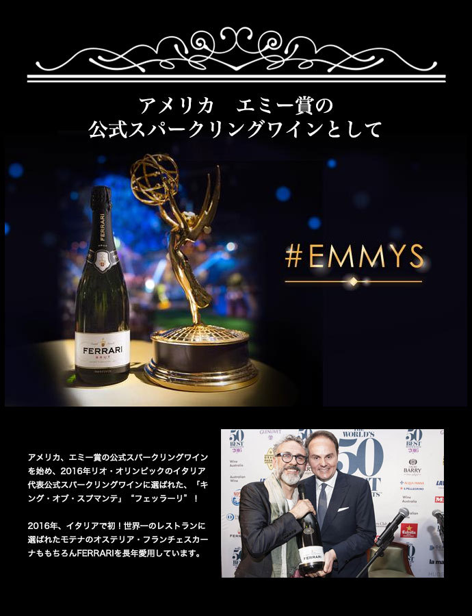 ![]() フェッラーリスプマンテは、発売以来国境を越えて世界の五つの大陸に輸出されています。スプマンテ事業の参入がもっとも難しいとされるフランスでも愛飲されているきわめて稀なスプマンテ。パリの有名なナイトスポットである“リド”で、シャンパンリストの中にただひとつ載っているスプマンテとしても有名です。 またフェッラーリは、イタリアの大統領官邸をはじめ、国外のイタリア大使館の公式晩餐会の食卓でも必ずサーヴされるスプマンテとしても有名です。レーガンからゴルバチョフ、ブッシュ、エリザベス女王、ムバラク、ミッテラン、クリントン、そしてジェノバサミットでの小泉首相まで、世界のリーダーたちがこのフェッラーリで乾杯をしてきました。 ![]() フェッラーリ社は、ジュリオ・フェッラーリが1902年にイタリアのトレンティーノで「メトッド・クラシコ(クラシカル・メソッド=シャンパーニュと同じ瓶内二次発酵による製法)」によるスプマンテを造りはじめた時に起源を発します。 ジュリオ・フェッラーリは「メトッド・クラシコ」で造るイタリアのスプマンテのパイオニアのひとりというだけでなく、フランスから持ち込んだシャルドネを用いて初めてスプマンテを造った生産者でした。ドイツのガイゼンハイム、フランスでも醸造を学んだ後シャンパーニュの生産者のもとで研修をしたフェッラーリは、醸造機器もすべてシャンパーニュから学び、かの地と同じ品種、同じ製法でスプマンテを造りはじめました。 ![]() その後ジュリオ・フェッラーリが設立したワイナリーは、1952年に現在のオーナーであるルネッリ・ファミリーに引き継がれました。当主のブルーノ・ルネッリの3人の息子たちフランコ、ジーノ、マウロは、スプマンテ造りを自らの天命と信じたジュリオ・フェッラーリの製品造りの信条を充分に理解し、維持、発展させていくことになります。トレンティーノの優れたぶどう畑からとれる高品質なぶどうと、古い製法のルールに厳格なほどに忠実なこと。それがジュリオ・フェッラーリの信条でした。ルネッリ・ファミリーが製品づくりのうえでもっとも大切にしていること、それは彼らが造りだす製品が常に最高の品質を誇ること、そして トレントの土地への忠実な信頼。 その価値観に従って造りだされる「フェッラーリスプマンテ」は、今ではイタリアを代表する伝説的な製品となっています。 |