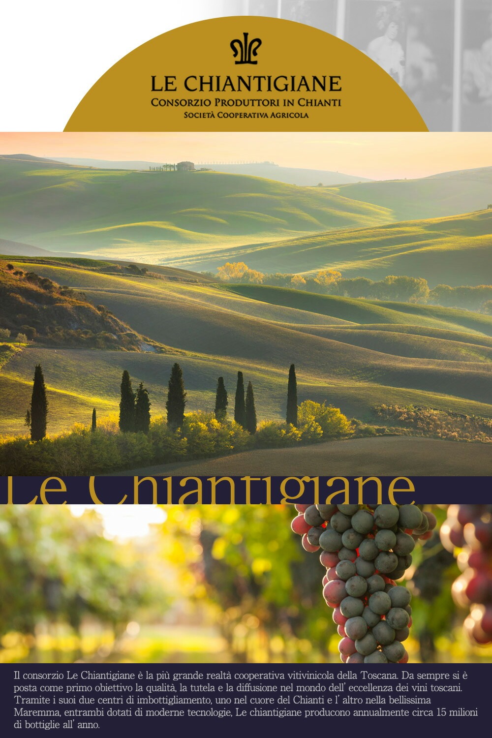 ![]() レ・キアンティジャーネ生産者協同組合は、高品質のトスカーナワインを生産することを目的とし、キアンティ地区では最初の協同組合として1975年に設立されました。 ![]() この組合は「レ・キアンティジャーネ」という、会社名でもあるブランドを通じて、キアンティ地区の会社であること、キアンティの造り手であること、さらにキアンティに代表されるトスカーナの伝統的かつ高品質なワインの造り手であることを誇りに、日々ワイン造りを行っています。 ![]() レ・キアンティジャーネ協同組合は、2013年、2014年、2015年、2016年、2017年、2018年と6年連続で、『キアンティDOCG』ワインの最高の生産本数を誇り、売上本数も国内最高の大規模小売組織として認知されています。 つまり、イタリアで最も売れている『キアンティDOCG』ワインがレ・キアンティジャーネ産なのです! これこそがコープやカルフール等多くのユーザーが信頼しているブランドである由縁です。 ![]() 現在イタリアコープでは年間25種類、550万本のレ・キアンティジャーネのワインが販売されています。 |