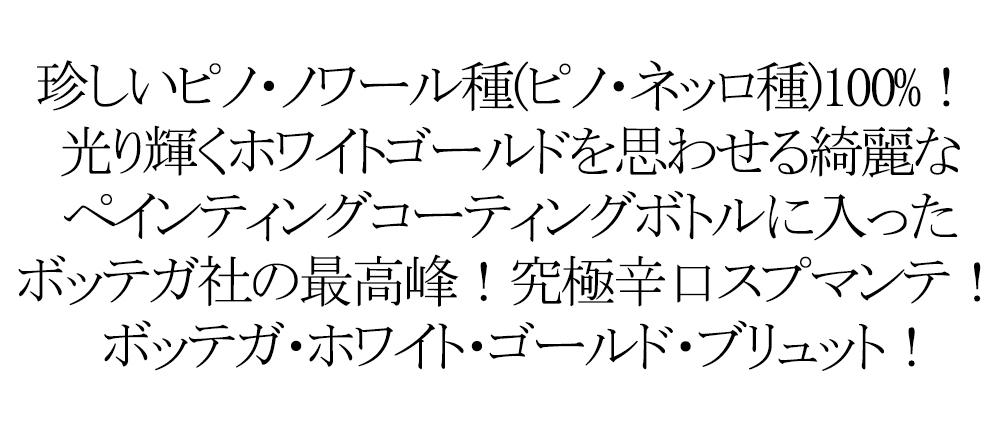 ボッテガ ホワイト ゴールド ピノ ネーロ種 100% ブリュット イタリア ヴェネト州 IGTパヴィーア 辛口発泡 白 スパークリングワイン 750ml