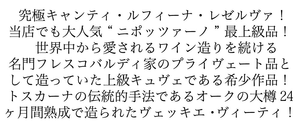ニポッツァーノ リゼルヴァ ヴェッキエ ヴィーティ 2019 蔵出し カステッロ ディ ニポッツァーノ フレスコバルディ社