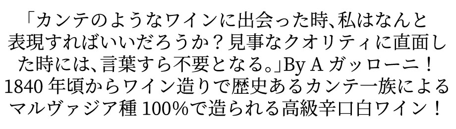 カンテ マルヴァジア 2020 カンテ家(現当主 エディ カンテ) マルヴァジア種100% IGTフリウリ ヴェネツィア ジューリア 白 辛口