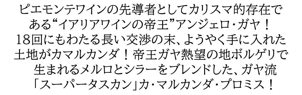 カ マルカンダ プロミス 2022 バリック樽12ヶ月熟成 カマルカンダ ガヤ社 IGTトスカーナ 正規代理店輸入品