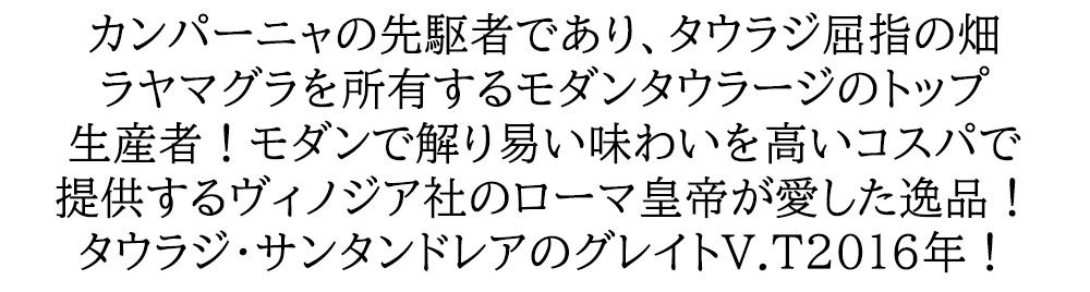 タウラジ サンタンドレア 2016 ヴィノジア社 アリアニコ種100% バリックで発酵 醸造責任者Beppe CaviolaD.O.C.G.タウラージ
