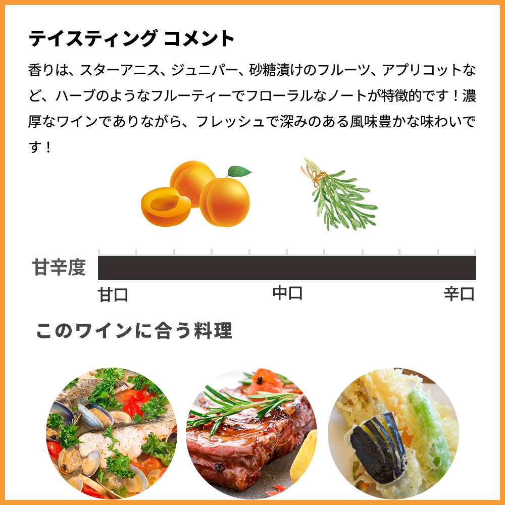 【商品説明】イタリア辛口オレンジワイン愛好家大注目!ピエモンテ州やトスカーナ州とともにイタリアでも歴史ある地域!エミーリア・ロマーニャ州のネスポリ村(アペニン山脈とアドリア海の間に位置する)から、トレッビアーノ種とピノ・ビアンコ種とソーヴィニョン・ブラン種で造られる辛口オレンジワインファン大注目! 造り手は、ネスポリ村の現在プルニェートと呼ばれる畑でブドウ栽培をはじめ「畑からグラスまで」をコンセプトに自然環境に配慮したワイン造りを実践!ロマーニャの土地を愛しロマーニャの地を最大限に表現するワインを造り出すポデーリ・ダル・ネスポリ社! しかもポデーリ・ダル・ネスポリ社の「テロワールそのものの再現」を目的とした、ポデーリ・ダル・ネスポリ社によるナチュラル・ワイン造り!この白ブドウを果皮ごと醸すという、赤ワインと同じ醸造工程で造られるオレンジワインは、同社が丁寧に育て上げたロマーニャ産のブドウの旨味を余すところなく感じられる逸品です!ラベルに描かれた風を受け、空高く飛び立つ紙飛行機!中央の穴は太陽を表現しています!(「風」と「太陽」は自然を表す重要なシンボル)また、ラベルに穴をあけ、ワインの独特な色味を見せることで、境界線を突破し、ワインに直接続く「道」も表現しています! ワインはブドウを除梗・破砕後、直ちに約10℃に保たれたのステンレスタンクで4~5日間マセラシオン!その後15~18℃で発酵させ、再びステンレスタンクに戻し、発酵が終わったら圧搾するという、赤ワインと同じ製法で醸造されます!その後、3~6ヶ月ほどシュールリーで熟成されリリースされます! 輝きのあるオレンジ色、香りは、スターアニス、ジュニパー、砂糖漬けのフルーツ、アプリコットなど、ハーブのようなフルーティーでフローラルなノートが特徴的です!濃厚なワインでありながら、フレッシュで深みのある風味豊かな味わいです!美味しい魚料理、スパイスの効いた肉料理、ラム肉、ロースト肉によく合います!ベジタリアンの方には、地中海料理の定番スープや、野菜の天ぷらなどのアジア料理と合わせてみてはいかがでしょうか。10-12℃(通常の白ワインより少し高めの温度)でお召し上がりください! エレガントな飲み心地の魅力溢れる辛口オレンジワインが正規品で数量限定少量入荷!
