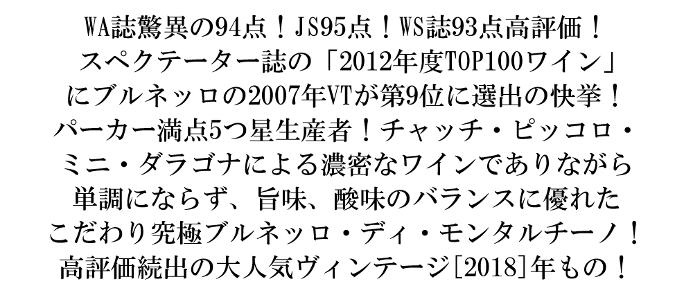 ブルネッロ ディ モンタルチーノ 2018 チャッチ ピッコロミニ ダラゴナ DOCGブルネロ ディ モンタルチーノ 赤 辛口 フルボディ