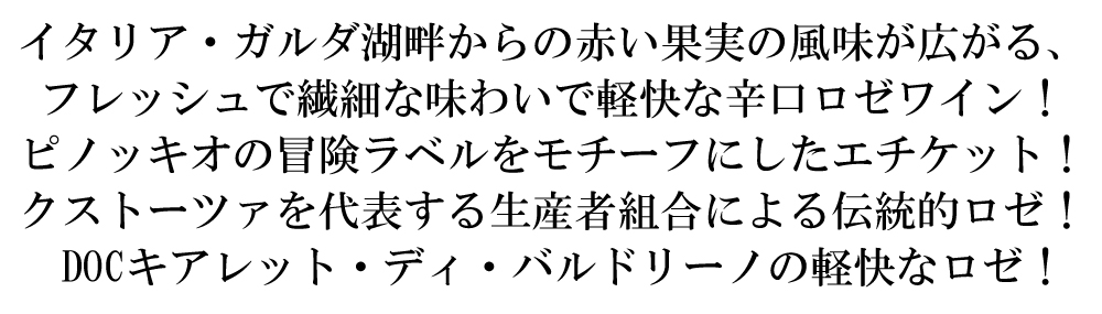 バルドリーノ キアレット 2024 カンティーナ ディ クストーツァ DOC キアレット ディ バルドリーノ (ピノッキオの冒険ラベル) ロゼ 辛口