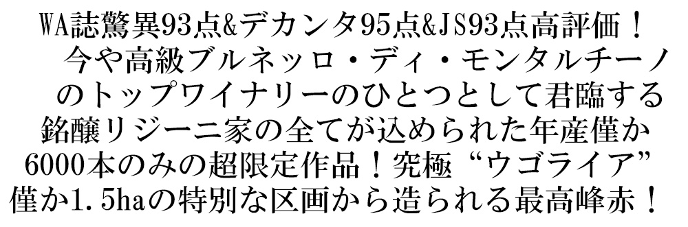 ウゴライア ブルネッロ ディ モンタルチーノ 2017 年 アジエンダ アグリコーラ リジーニ元詰 DOCGブルネッロ ディ モンタルチーノ