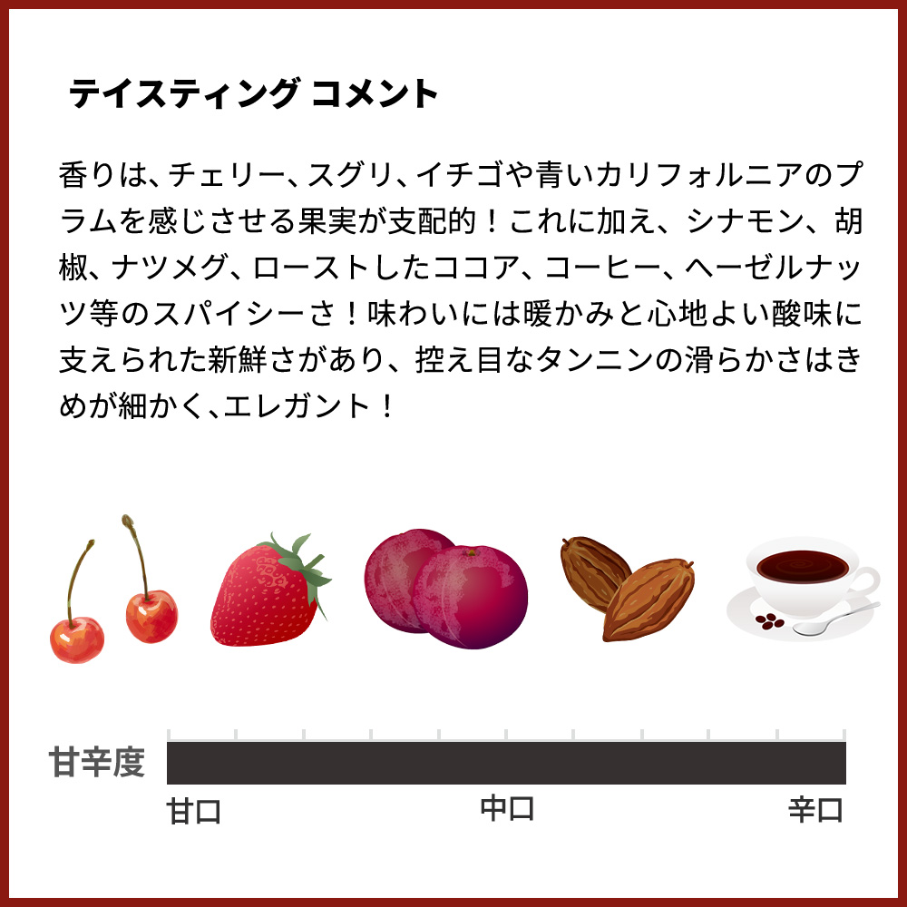 【ブドウの品種】カベルネ・ソーヴィニョン50%、メルロー30%、カベルネ・フラン10%、サンジョヴェーゼ10%