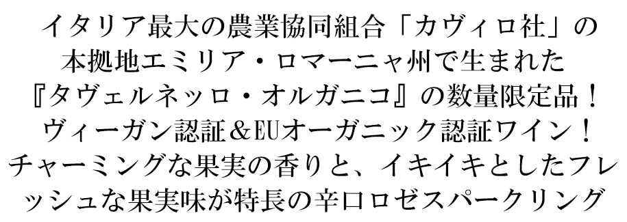 タヴェルネッロ オルガニコ スプマンテ ロザート エクストラ ドライ イタリア カヴィロ社 世界No.1のイタリアワイン ヴィーガン認証 ロゼ 辛口<br>TAVERNELLO Organico Spumante Rosato Extra Dry