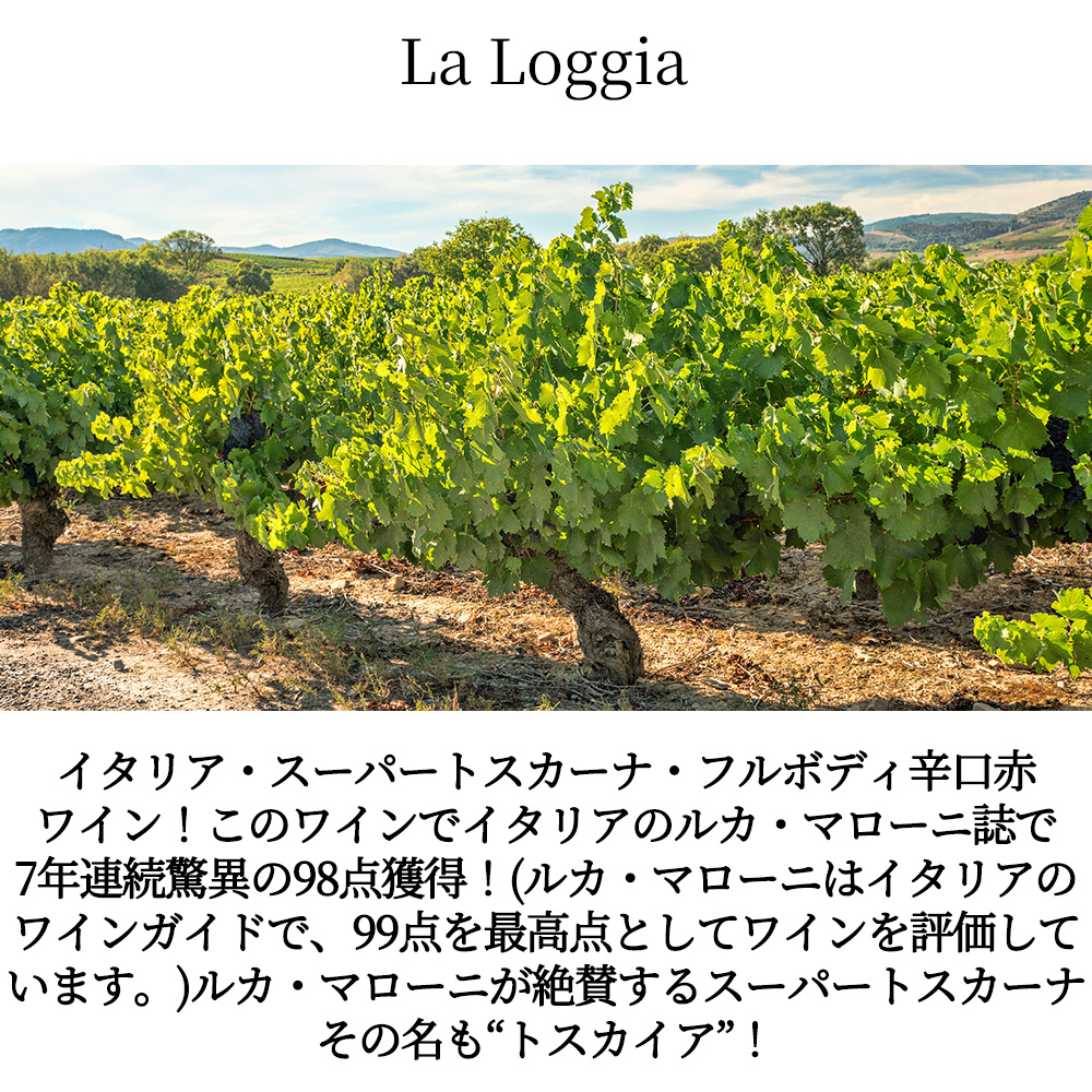 【商品名】トスカイア[2022]年・ラ・ロッジア(ロセッティ)・IGTトスカーナ・ロッソ・フレンチオーク100%&新樽100%で驚異の6ヶ月熟成・イタリア・ルカ・マローニ誌驚異の98点獲得!(7年連続驚異の98点獲得)・紋章のレリーフボトル