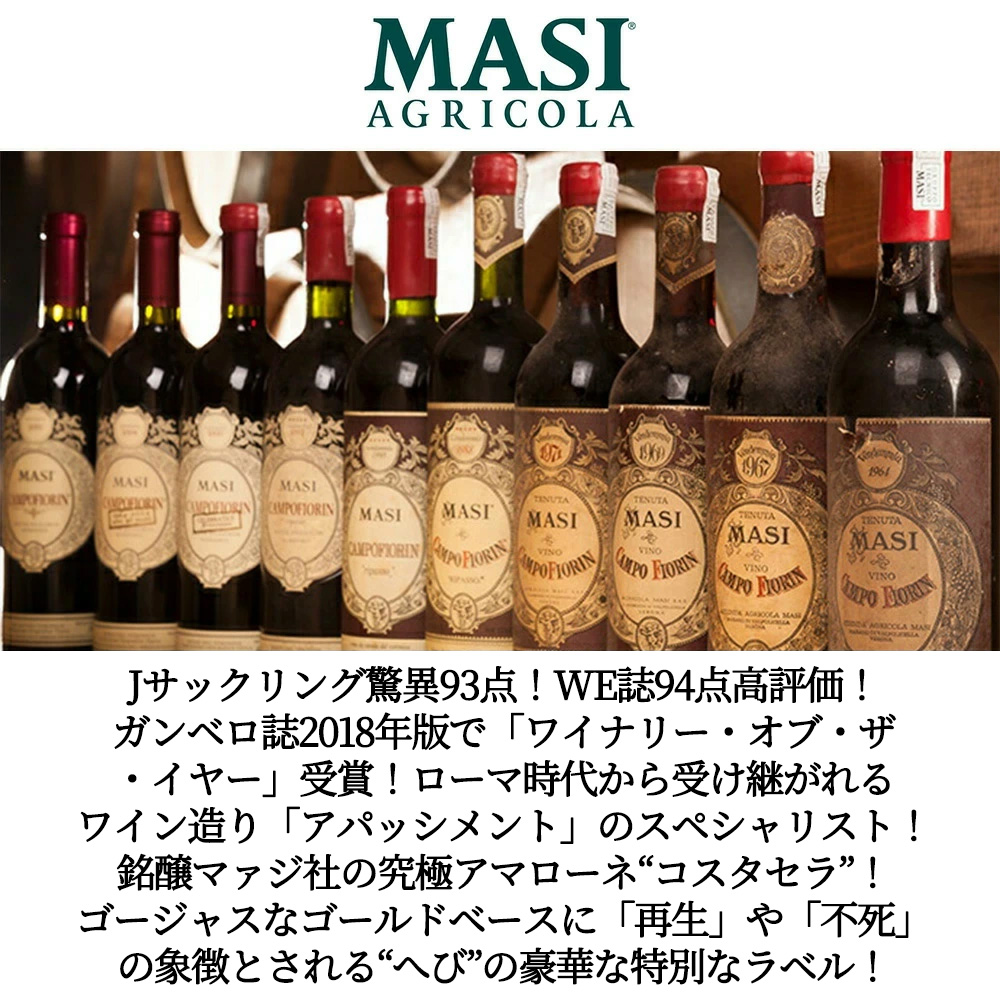 【商品名】【豪華箱入】アマローネ・デッラ・ヴァルポリチェッラ・クラッシコ・コスタセラ(ヘビラベル)[2019]年・蔵出し品・オーク樽28-30ヶ月熟成・マァジ社・DOCGアマローネ・デッラ・ヴァルポリチェッラ・ジェームス・サックリング驚異の93点&ワインエンスージアスト誌94点&ワインスペクテーター誌90点・専用箱入・正規品【英名】Amarone della Valpolicella Classico Costasera 2019 MASI DOCG Amarone della Valpolicella