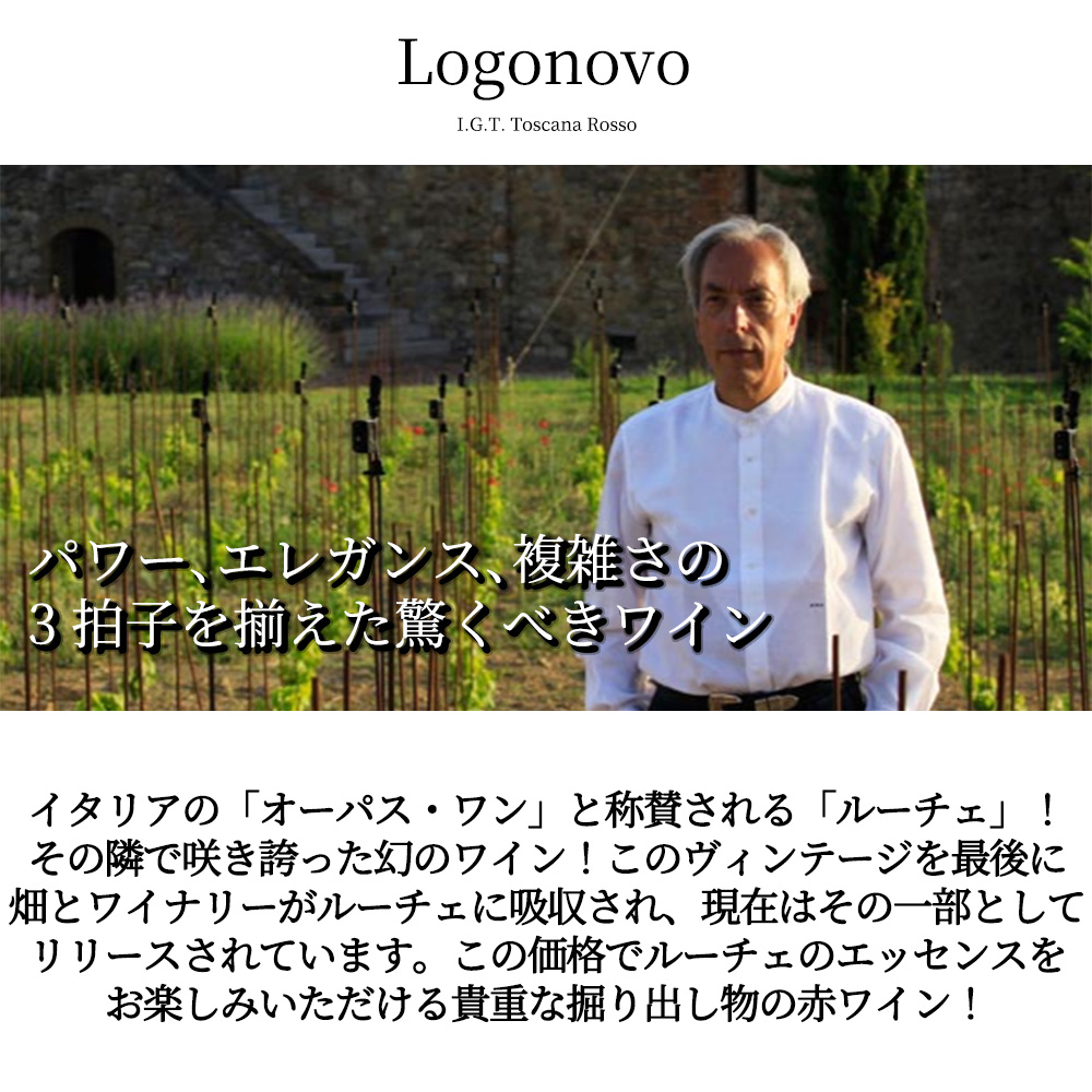 【商品名】ロゴノーヴォ[2015]年・醸造責任者(ロベルト・チプレッソ家)(チンクエペルロゴノーヴォ)・バリック(新樽30%)18ヶ月熟成 IGTトスカーナ・ロッソ・アルコール度数驚異の15%・ヴェロネッリ誌で91点(畑とワイナリーが「ルーチェ」の一部として吸収される最終ヴィンテージ)・10年熟成作品