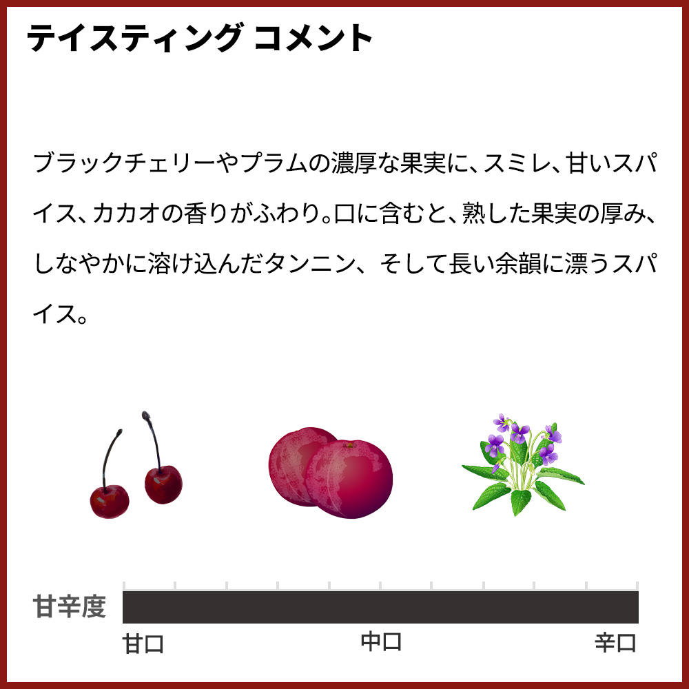 【ブドウの品種】サンジョヴェーゼ60%、メルロー25%、プティ・ヴェルド7%、サグランティーノ5%、シラー3%