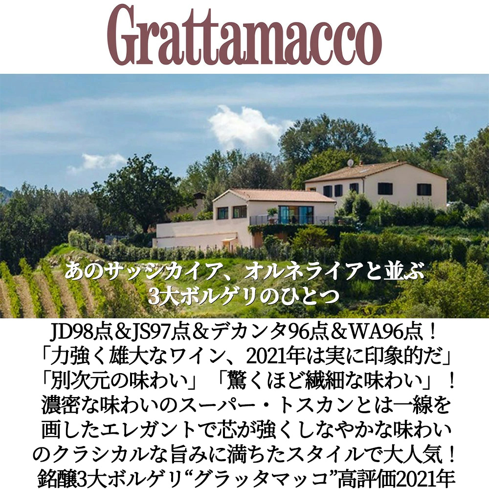 グラッタマッコ ロッソ 2021 蔵出し品 DOCボルゲリ ロッソ スペリオーレ ポデーレ グラタマッコ JD驚異の98点&JS97点&デカンタ96点 Grattamacco Bolgheri Superiore 2021 Societa