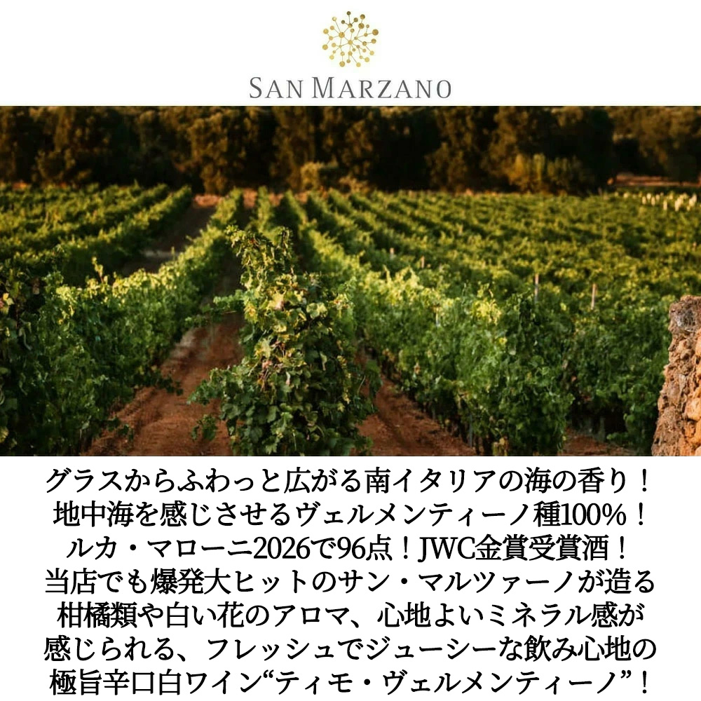 ティモ ヴェルメンティーノ 2024 カンティーナ サン マルツァーノ イタリア プーリア サレントI.G.P. ルカ マローニ 2026にて96点 Timo Vermentino Salento IGP 2024 San Marzano