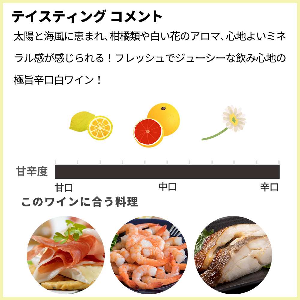 【商品説明】イタリア辛口白ワイン愛好家大注目!ヴェルメンティーノファン大注目!イタリア・プーリア州のヴェルメンティーノ種100%!グラスからふわっと広がる南イタリアの海の香り!地中海を感じさせるヴェルメンティーノ!フレッシュなミネラル感のあるみずみずしいイタリア辛口白ワイン! 造り手は、イタリアのかかとの部分にあたるサレント半島に位置するワイナリーで、1962年に創業した共同組合!現在は1200以上の栽培農家を抱え、熟練の栽培家らの手によって造られる、太陽、大地の恵みもたっぷりと吸収したプーリアならではの土着品種で、高品質なワイン造りに取り組み、革新的な醸造技術によってブドウとテロワールの魅力を余すところなく表現したワインは、世界中で大人気!カンティーネ・サン・マルツァーノの新たな挑戦! ヴェルメンティーノは、主にイタリアやフランスの地中海沿岸で栽培される白ワイン用ブドウ品種で、爽やかな酸味とミネラル感が大きな特徴!レモンやグレープフルーツなどの柑橘系、白い花、ハーブを思わせる香りを持ち、味わいにはほのかな苦味と塩味を感じることが多い!温暖な気候でも酸が保たれやすく、フレッシュでキレのあるスタイルから、果実味に厚みのあるタイプまで幅広い表現が可能で、魚介料理との相性抜群の辛口白ワイン!このティモ(Timo)はイタリア語でプーリアの海岸に生えるタイム(ハーフの一種)に由来!プーリアの太陽をたっぷりと浴びて、美しい海の近くで造られるブドウは、フレッシュでアロマティックな表現をもたらしてくれる!そんな海岸砂丘に生えるタイムの茂みをイメージして名付けられたワイン! ティモ・ヴェルメンティーノ[2024]年でルカ・マローニ2026にて96点!さらにジャパン・ワイン・チャレンジ2025にて金賞受賞&『Best Value Old World White Wine for Wines from 1,000 yen to 1,999 yen』に選出! 厳選ヴェルメンティーノ種100%をステンレスタンク5ヶ月熟成で造られる辛口白ワイン!太陽と海風に恵まれ、柑橘類や白い花のアロマ、心地よいミネラル感が感じられる!フレッシュでジューシーな飲み心地の極旨辛口白ワイン!様々なシーンで活躍するワインですが、特にシーフード、白身魚、魚介の前菜や軽いチーズなどとの相性が抜群!
