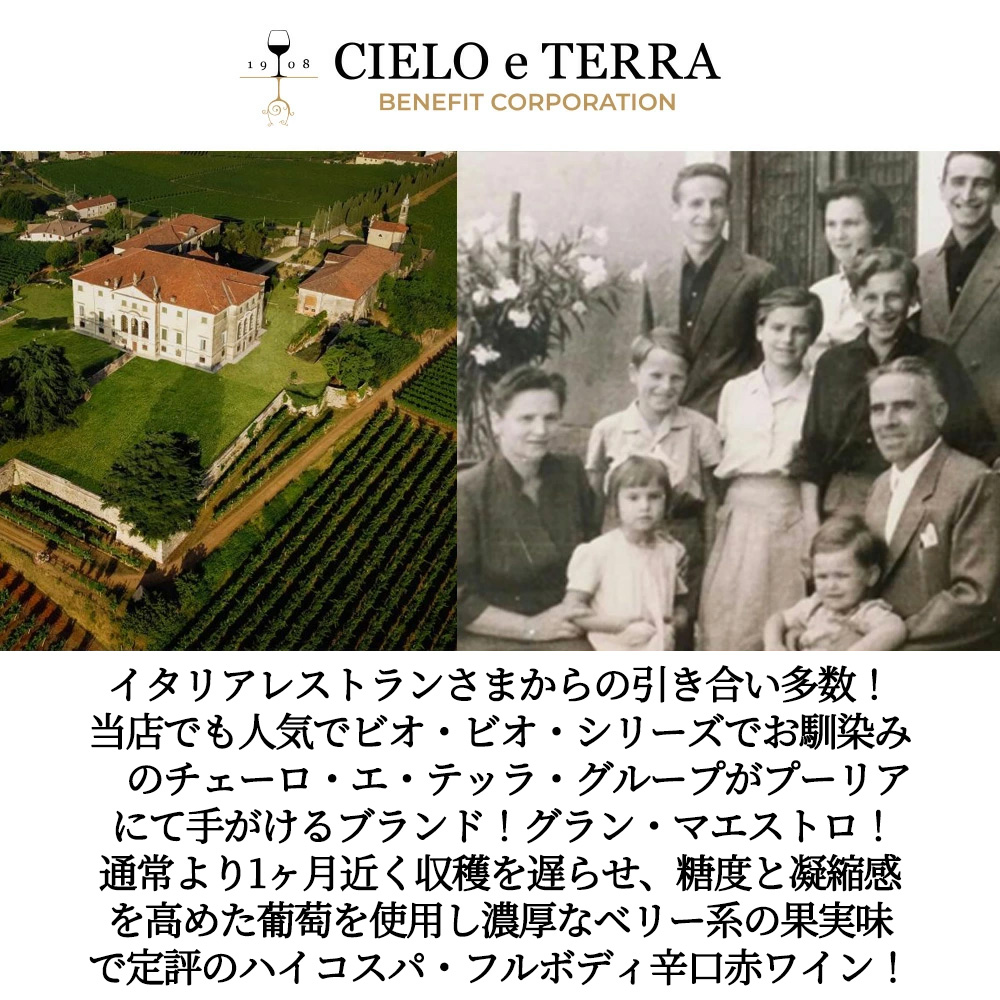 グラン マエストロ ロッソ アパッシメント 2023 マエストロ(チェーロ エ テッラ社) IGTロッソ プーリア 正規品 14.5% Gran Maestro Rosso Appassimento 2023 Maestro