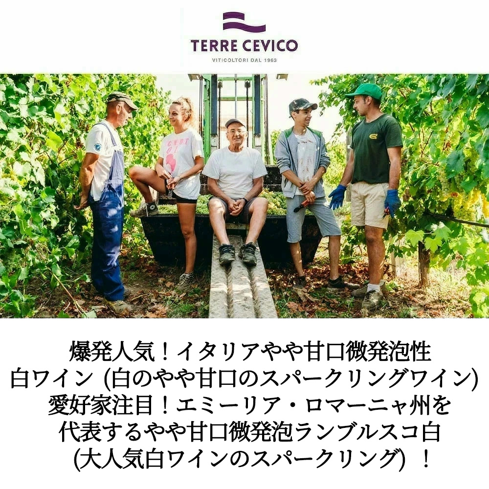 【商品説明】今!爆発人気!イタリアやや甘口微発泡性白ワイン (白のやや甘口のスパークリングワイン) 愛好家注目!エミーリア・ロマーニャ州を代表するやや甘口白ワイン (大人気白の微発泡やや甘口スパークリングワイン)! (ランブルスコ・ビアンコとは、イタリア北部エミリア・ロマーニャ州を中心に造られる、白の微発泡スパークリングワインのことで使用ブドウは「ランブルスコ」系品種で、白いスパークリングが基本スタイルを指すときに「ビアンコ(白)」と表記。ランブルスコ・ドルチェ・ビアンコは、フレッシュなベリー(イチゴやラズベリー系)のニュアンスが中心で、ベルベットのような柔らかな質感やほのかなフローラル感が加わります。爽やかな酸が特徴です。現地では、塩味が穏やかなチーズ、生ハムメロンやフリット、ピッツァや軽めのトマトパスタの料理と合わせる日常ワインとして親しまれています。) 造り手は今やロマーニャ全域のワインを製造するイタリアを代表する会社となったCE.VICO社!2000年以上もの間、トスカーナとロマーニャの間の、絵画のように美しいアベニン丘陵に広がる葡萄栽培に最適な土地でワインを製造していた生産者たちが、1950年代前半に彼らの経験を集め、共同でワインを造り始めたことに起源を持つ、チェビコ社!現在では、エミリア・ロマーニャのみならずヴェネト、トスカーナやウンブリア地方にまで生産規模を広げています!今では栽培、醸造、実験研究、分析など多方面においてその活躍の場を広げており、近年では太陽光を利用した自家発電、環境負荷をゼロに近づける廃棄物の分別、排水の残渣管理など、サステナビリティへの取り組みへも積極的!60以上の国にワインを販売し、イタリア屈指の協同組合に成長! このランブルスコのような甘口寄りのビアンコは、おすすめ料理:トマト系パスタ、ピザ全般、サラミ、生ハム・バーベキュー、チーズ、フルーツの盛り合わせ 飲み頃温度8-10度よく冷やして(8-10度前後)楽しめます! このランブルスコ ドルチェ ビアンコ ボンボンは栽培:砂質土壌や粘土質土壌、石灰質土壌など農法:環境に配慮した持続可能な農業方法、果汁を発酵タンクに移し、酵母を加えて一次発酵。その後、ワインを密閉されたタンクに移し、糖分と酵母を追加して二次発酵を行います!このプロセスでワインに自然な泡が発生します!タンク内での発酵が完了した後、ワインは瓶詰めされます! ◆商品説明:微発泡性のある淡い麦わら色!白桃、リンゴのコンポート、アカシア、わずかにハチミツの香り!口当たりは優しく、微発泡の爽やかさと、酸味も程よくあり、バランスの取れた味わい!ブドウのフルーティーな甘さと、ほのかな柑橘のニュアンスが後味を引き締めます! ◆合う料理:生ハムとメロン、クリーム系パスタ、クリームコロッケ、デザート全般 ◆ランブルスコ品種:詳細(ランブルスコ・サラミーノ、ランブルスコ・マラーニ、ランブルスコ・マエストリ) ランブルスコ・サラミーノ種、ランブルスコ・マラーニ種・ Lambrusco Marani &ランブルスコ・マエストリ種・Lambrusco Maestri &ランブルスコ・アンチェロッタ種 Lambrusco Ancellotta から造られる、花のアロマが香るフルーティーで優しい甘さが魅力の超お買い得ランブルスコ・ビアンコ!フルーツ、軽いドルチェ、塩味が穏やかなチーズ、生ハムメロンなど軽い前菜!フリット、ピッツァや軽めのトマトパスタ、和食なら唐揚げや天ぷら、出汁系の塩味がやさしい料理とも相性が良いスタイルです!飲み頃温度8-10度