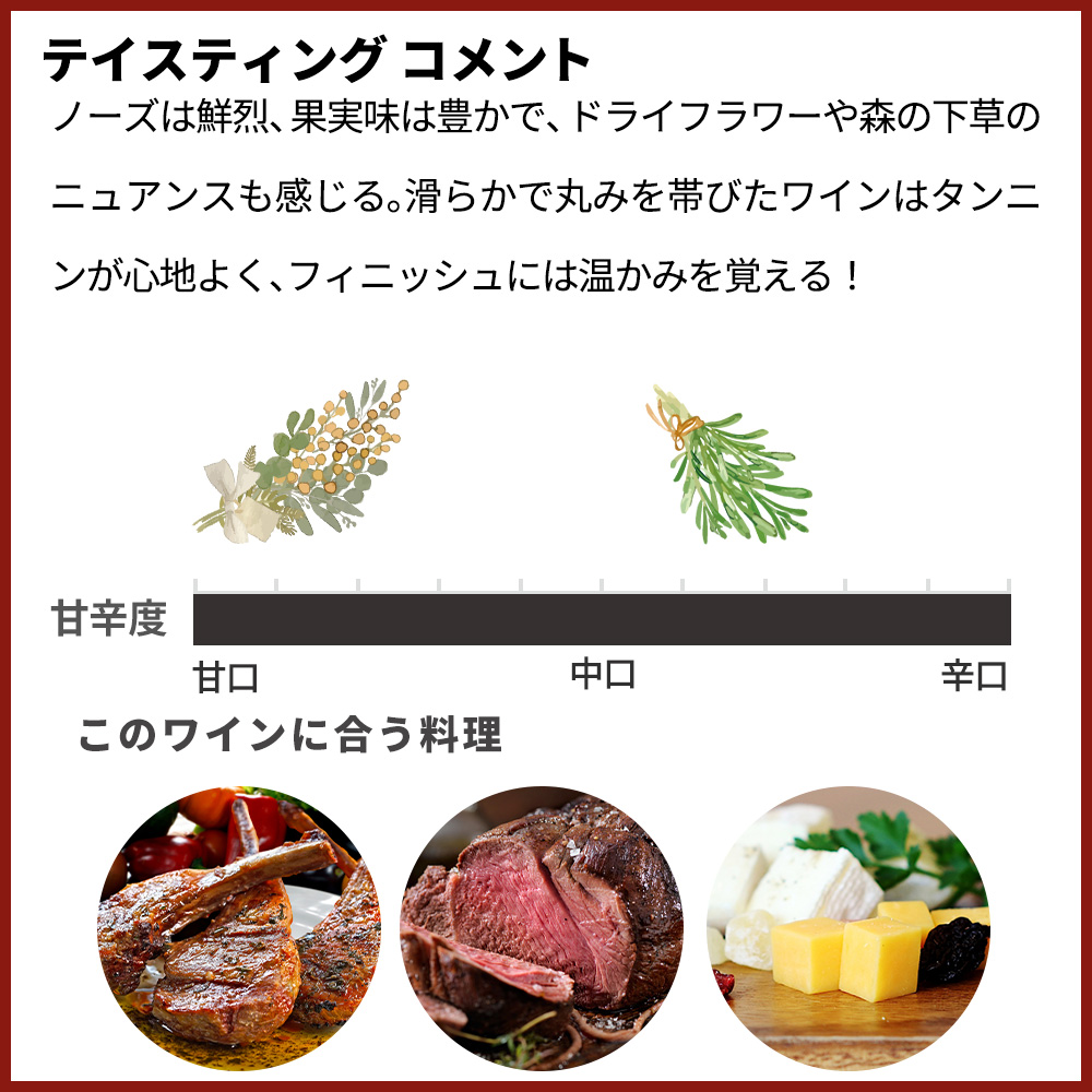 【商品説明】イタリア・ピエモンテ・フルボディ辛口赤ワイン愛好家大注目!高級バルバレスコファン大注目!イタリアの偉大な赤ワインのひとつ!ワイン評論家のヒュー・ジョンソン氏が「ネッビオーロ種100%で造る、イタリアの典型的な赤!隣で産するバローロと同様に深みのある複雑なフレーバーに強烈ですっきりしたタンニンを伴う」★★ー★★★★4つ星と絶賛するバルバレスコ!(しばしばイタリアワインの王様バローロ以上の繊細さと調和を備えると言われる。) 造り手は、ピエモンテ州はトレイゾで4世代に渡る歴史を誇るバルバレスコの老舗グラッソ家!現当主のジューリオ氏が2001年に「カ・デル・バイオ」の名を掲げて立ち上げた人気造り手による、バルバレスコのクリュとして知られる“ヴァルグランデ”(カ・デル・バイオが最大の所有面積を持つ畑)!からのネッビオーロ種100%をステンレスタンク発酵!スロヴェニア産大樽で驚異の30ヶ月熟成!さらに6ヶ月の瓶熟を経てノンフィルターでリリースされる究極バルバレスコ! この2022年でヴィノス誌驚異の92点でコメントは「2022年産のバルバレスコ・ヴァッレグランデは、まさに格調高いワインです。チェリーのマセラシオン、シナモン、ブラッドオレンジ、新品の革、タバコ、モカ、乾燥ハーブといった香りが、2022年産に際立ったエキゾチックな魅力を与えています。深みと層を成す味わいに、素晴らしい余韻と奥行きがあり、特にその年の困難な状況を考慮すれば、2022年産は実に印象的です。洗練されたタンニンが、余韻の段階で全体を見事にまとめ上げています。」! 美しいガーネット色!ノーズは鮮烈、果実味は豊かで、ドライフラワーや森の下草のニュアンスも感じる。滑らかで丸みを帯びたワインはタンニンが心地よく、フィニッシュには温かみを覚える!マリアージュは、ローストした赤味肉、熟成チーズ、フォンデュ、肉や野菜のスープにぴったり! 大人気カ・デル・バイオの高級バルバレスコ“ヴァルグランデ”が大人気ヴィンテージ[2022]年もので極少量入荷!